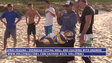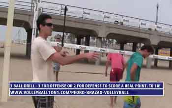 This video series features Pedro Brazao taking the players through a guided hard angle hit ball with a line block off a server to either player. If the defender does not dig the ball the coach puts in another ball. This video has the funniest in action sequence we have ever filmed! “This will hopefully teach you young guys a lesson about making fun of old fat guys who are just getting back into it and trying to get in shape! We were young guns too and in many cases brought a much much bigger cannon! :)” – Andor Gyulai – With a Bazooka
