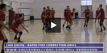 The next drill is USC Assistant Coach Cam Green’s Rapid Fire Correction Drill. The staff joke that this is how Cam gets so buffed but this is basically a very very fast passed correction drill that is used to get the team ready for the 6 on 6 team portion of practice. We like this drill at volleyball1on1 because of the energy it create and how it gets the players ready to compete.