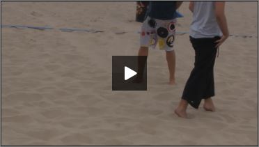 Dave shows and explains the reverse crunch by using the volleyball and the usual objects found on the beach.