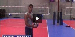Mike shows how to jump serve from a different angle and mentions how execution, not style, scores points.