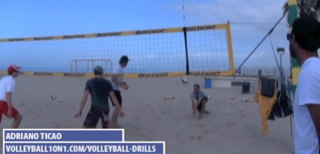 Good volleyball warm-up drills are critical not only to help avoid injury but also to improve skill and get the athletes ready to play. In this volleyball drill series Brazilian Volleyball Coach Adriano Ticao puts his two athletes through a series of drills that accomplish a number of important tasks.