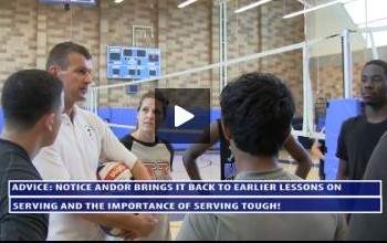 In this video Andor teaches important serving principals, by discussing a study done with regard to the most important things for having success in volleyball. This is followed by a pressure serve drill that brings the point home for the players.