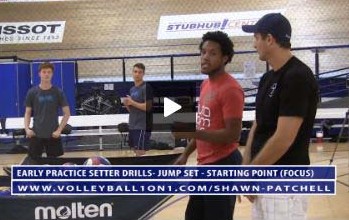 In this video Chris Austin starts by explaining how they run setting drills and clinics. Then the video follows with a progression of the setting drills with a multi-ball stationary drill. The multi-ball stationary drill basically allows the setter to get a feel of just setting, pulling together what they did in drill 1 – where the focus was just hands, and drill 2 – where the focus was just feet. The drill consist of coach tossing 8 balls to the players and the setter setting front or back with an “In system” toss.