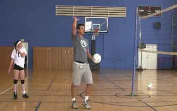 This early practice volleyball setting drill works on just footwork patterns when setting. This drill should be performed before practice or while the rest of the team sets up the nets and warms up. You will notice hand position (Drill 1 in series) is broken up from footwork (Drill 2 in the series). This drill teaches detailed info on volleyball setting footwork.