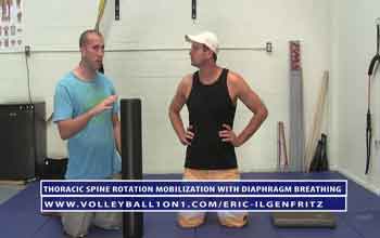 One of the fastest ways to fix nagging lower-back, shoulder or neck problems is to improve mid-back mobility with targeted thoracic spine exercises. The thoracic spine rotation mobilization with diaphragm breathing volleyball exercise is one of the best exercises older players can do to reduce back problems.