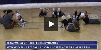 The next video features volleyball warm up exercises and drills called jog, core, dynamics. This is a great warm up for players of all levels and is quick and effective. This drill is a combination of what Chris learned at UCI (Playing), USC (Coaching), and USA National Team (Coaching and Playing).