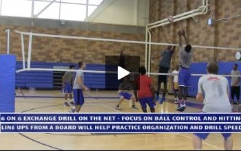 The 6 on 6 Exchange Volleyball Drill on the net is one of the best drills to focus on team ball control and individual controlled hitting. This drill also works on the important and often ignored volleyball skill of moving without the ball. Now considering the fact that the majority of the time players are moving without the ball it is always surprising how little coaches practice this critical skill.
