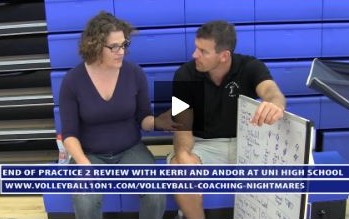This 4 video series features Andor Gyulai reviewing Uni High Volleyball Coach Kerri Eich coaching a match. This post is extremely insightful as it reveals many common match volleyball coaching mistakes former player make when coaching. The video also brings to light what a coaches real goals should be during a match and what should be focused on and when.