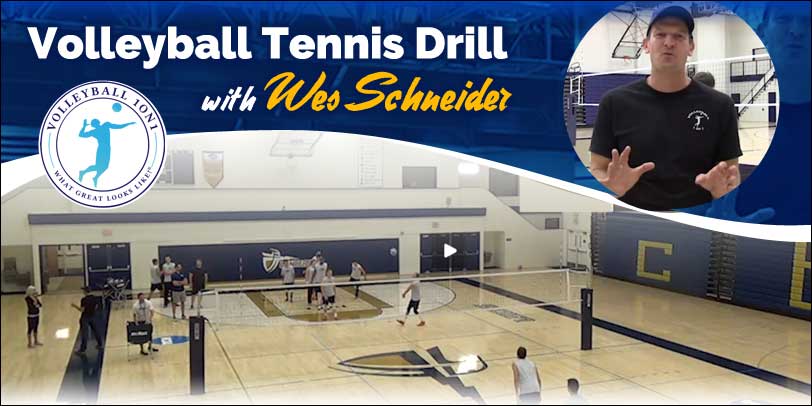 Volleyball Tennis Drill is a movement and passing warm up drill Wes uses occasionally with his team before match days to have a little fun and get the team moving. The drill focuses and improves a number of different skills including but not limited to; passing, movement and reading. We have also included the conversation from the office where the drill purpose is discussed in detail.